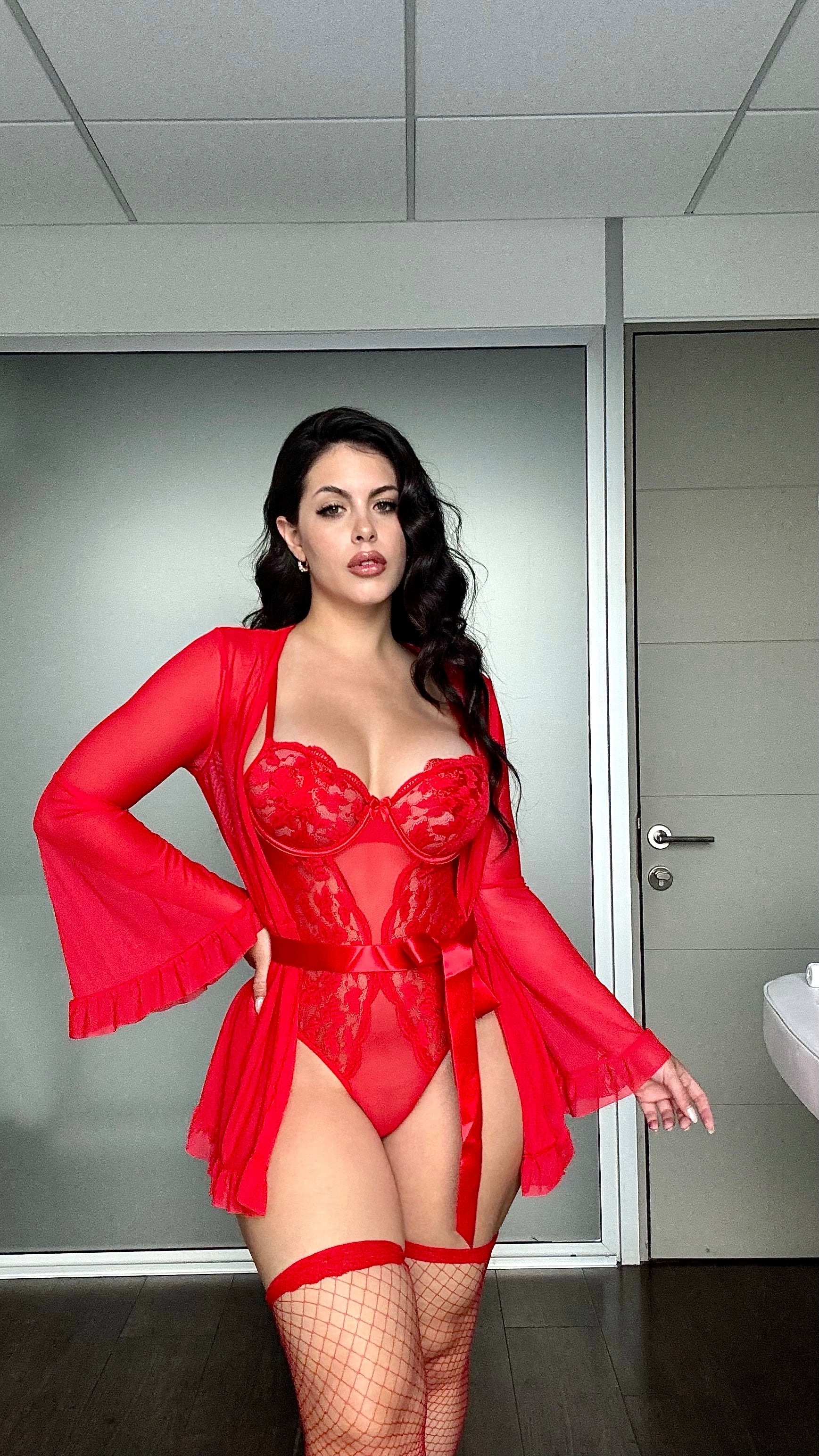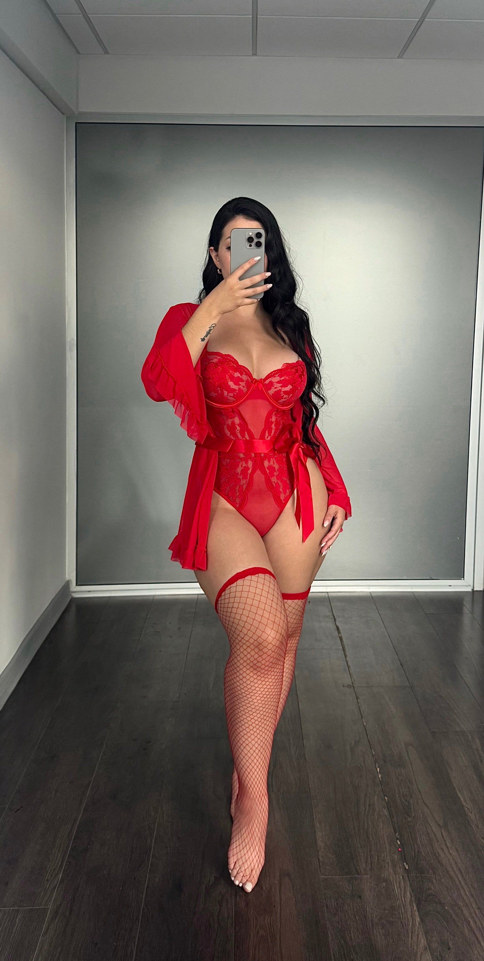 Descubre la sensualidad con el body de lencería de encaje Fragola. Este delicado conjunto te hará sentir increíblemente segura y sexy, realzando tu belleza natural. Incluye una bata suave y medias para un look completo que hará que cada momento sea especial. ¡Déjate seducir!